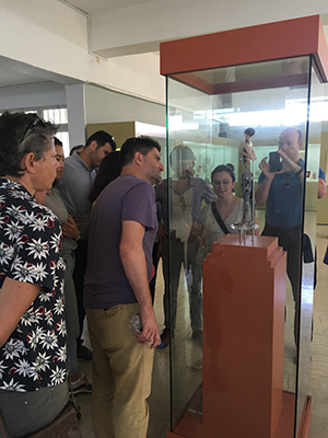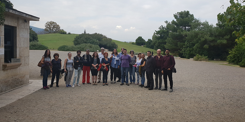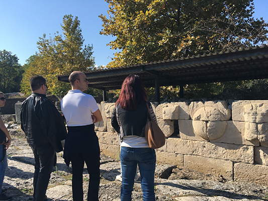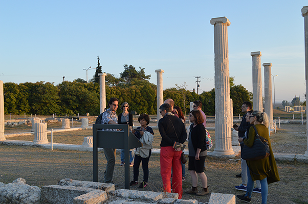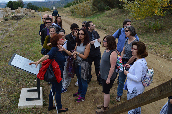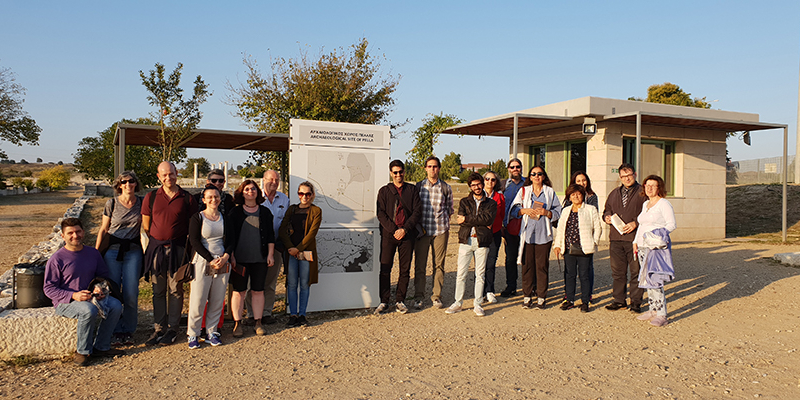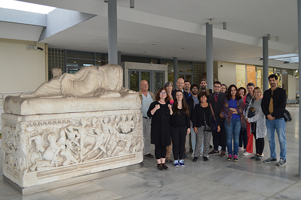 During our field trip to northern Greece, Dr. Angeliki Kottaridi, Director of the Ephorate of Antiquities of Imathia, received our team and introduced us to the site and Museum of the Royal Tombs at Aigai, the Palace of Aigai, and the exhibit, then in preparation, at the Polycentric Museum of Aigai-Vergina. Archaeologist Eleni Benaki, a long-time collaborator of (†) Prof. Dimitrios Pantermalis in the excavations at Dion, guided our visit to this archaeological site and its museum. MA Archaeologist-Tourist Guide, Konstantinos Papastathis, indefatigably led a rich itinerary of visits to ancient and byzantine monuments and the Archaeological Museum of Thessaloniki and the Museum of Byzantine Culture, as well as the archaeological site and Museum of Pella.