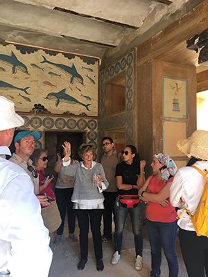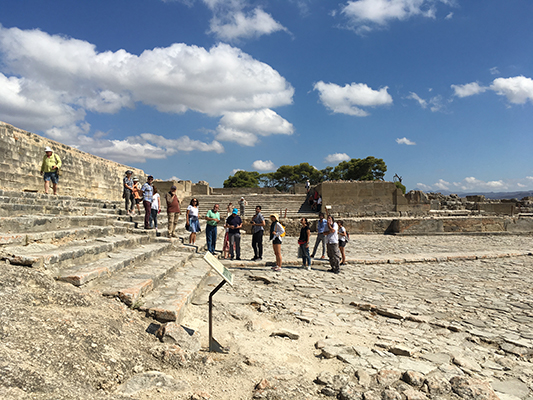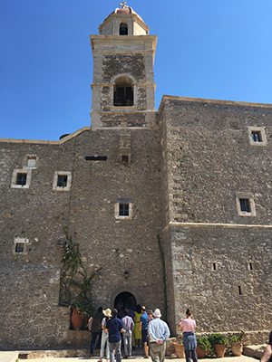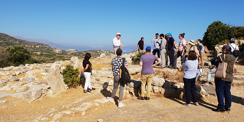 During our field trips in Crete, the Right Reverend Abbot Philotheos Spanoudakis welcomed us at the Holy Monastery of Toplou, and offered us an opportunity of a guided tour of this important 14th century monastery’s architectural setting, and its treasures of icons and manuscripts. We had the good fortune to be introduced to the collections of the Heraklion Archaeological Museum by Dr. Giorgos Rethemiotakis, Director emeritus of the Herakleion Archaeological Museum. Ms. Victoria Kountouri, PhD candidate in Classical Archaeology at the University of Crete, guided us through the archaeological site of Eleutherna Orthi Petra and the Museum of Ancient Eleutherna, on the behalf of the excavation and museum’s Director Prof. Nikolaos Chr. Stampolidis of the University of Crete. MSc Archaeologist Elisavet Kavoulaki, Supervising Archaeologist of the Palace of Knossos of the Ephorate of Antiquities of Heraklion, guided us through the antiquities of Knossos. Dr. Thomas M. Brogan, Director of the INSTAP Study Center for East Crete, kindly agreed to introduce us to the archaeological site at Gournia. Ms. Holly Parton undertook to familiarize us, on the behalf of the excavation’s Directors Dr. Alexander MacGillivray, Prof. Jan Driessen and (†) Hugh Sackett, with the progress of archaeological exploration at Palaikastro.