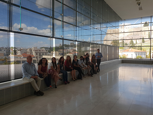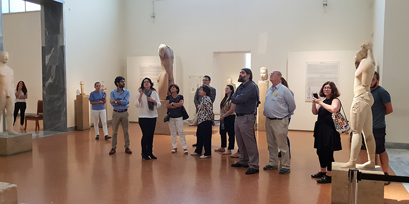 Archaeological site visits and museum tours provided exceptional opportunities to engage deeply with our workshop locales and, again, we are most grateful for on-site and gallery talks by local experts. Our visits to locales of archaeological and museological interest in Athens were led by the museum staff (Acropolis Museum); Dr. Eleni Konstantinidi-Syvridi, Curator in the Department of Prehistoric, Egyptian, Cypriot and Near Eastern Antiquities, and Dr. Chrysanthi Tsouli, Curator in the Department of Sculpture (National Archaeological Museum); Dr. Nikos Tsoniotis, Archaeologist in the Ephorate of Antiquities of the City of Athens (Acropolis of Athens).